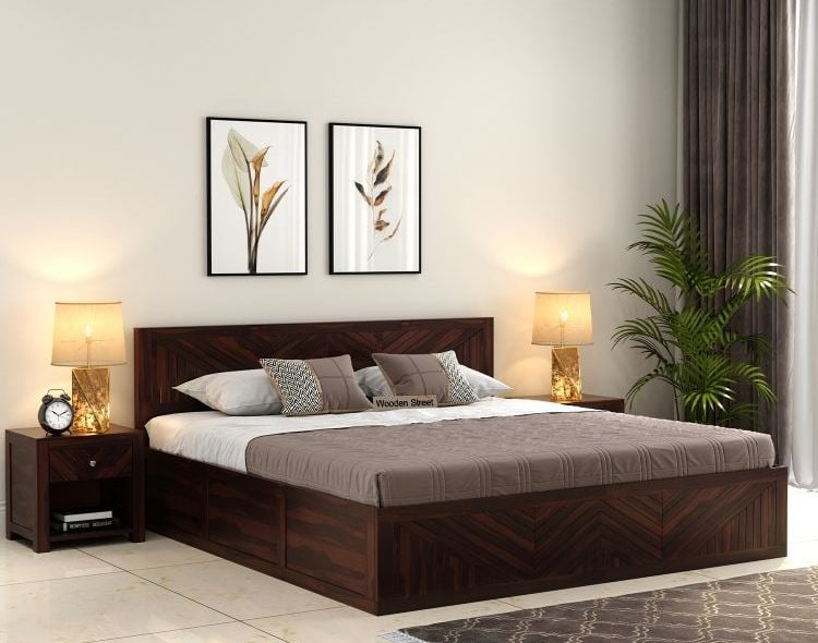 Wood: Solid wood beds, such as sheesham or teak, are timeless, strong, and versatile.