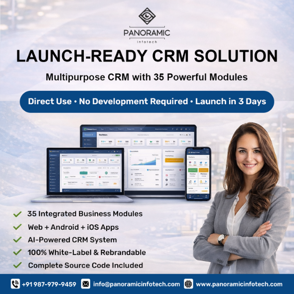 Panoramic Infotech’s Launch-Ready CRM Solution is built for businesses that value speed, control, and scalability. By combining AI-powered intelligence, 35 integrated business modules, multi-platform access, and full white-label ownership, it delivers everything a modern CRM should—without the delays of traditional development.