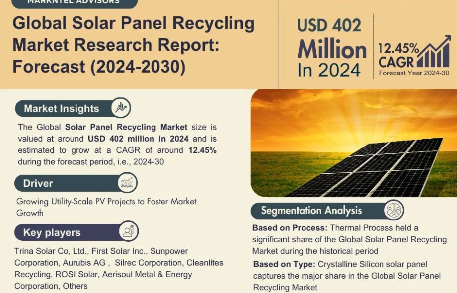 As indicated in the latest market research report published by Markntel Advisors, “Solar Panel Recycling Research Report: Forecast (2024-2030)”, this report offers a detailed analysis of the industry, featuring insights into the Solar Panel Recycling industry. It encompasses competitor and geographical analyses, as well as recent advancements in the market.